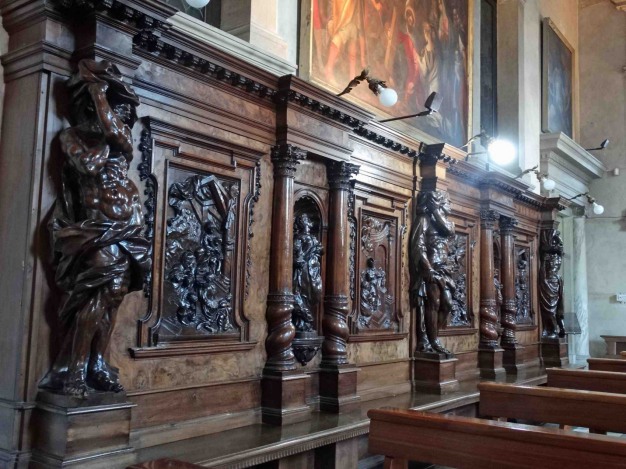 Ces boiseries, oeuvre de Giacomo Piazzetta (1640 - 1705) remplacent celles de Brustolon détruites dans l'incendie de la chapelle en 1867.