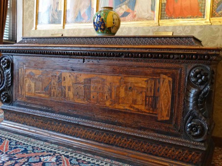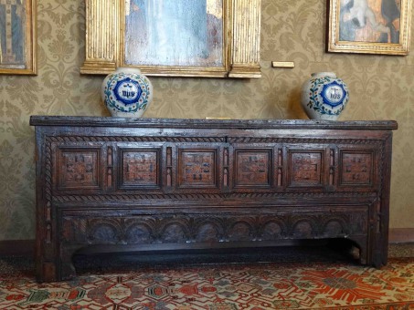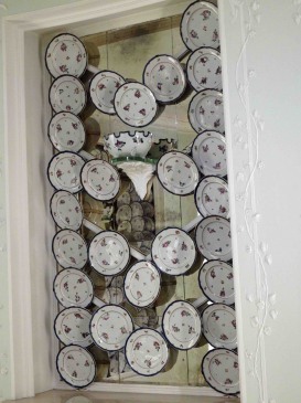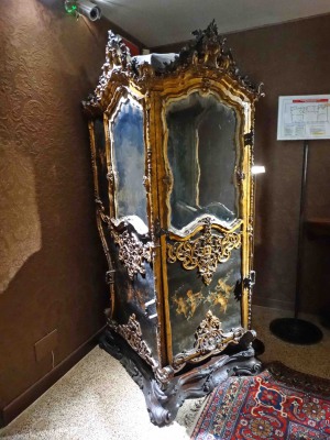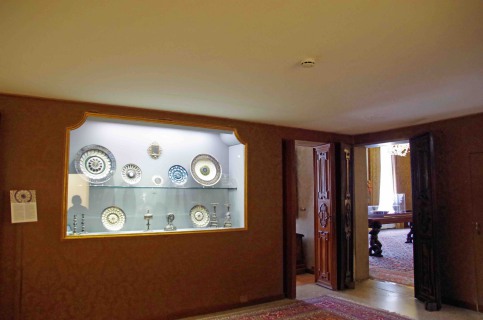 Cette salle a été aménagée en 1950 en même temps que l'escalier par l'architecte Tomaso Buzzi (1900-1950) afin d'abriter une collection exceptionnelle de 275 pièces de vaisselle en faïence de la manufacture vénitienne Geminiano Cozzi.(1)