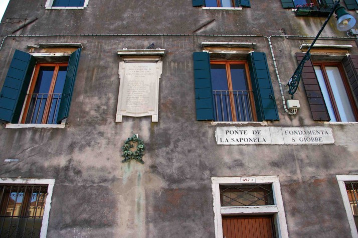 le projet d'installation d'une plaque de marbre entre les numéros 627 et 628 du Fondamenta San Giobbe à hauteur des fenêtres du premier étage au pied du pont de la Saponela.