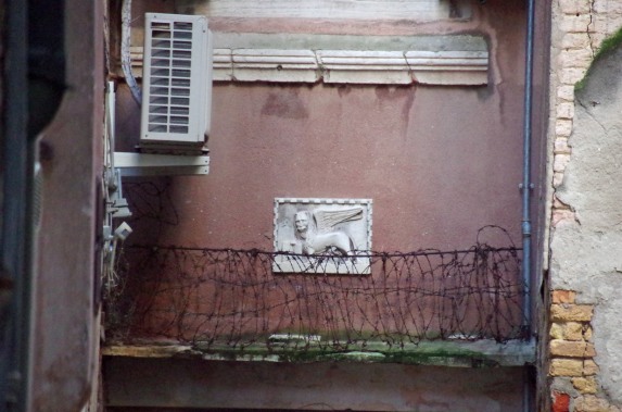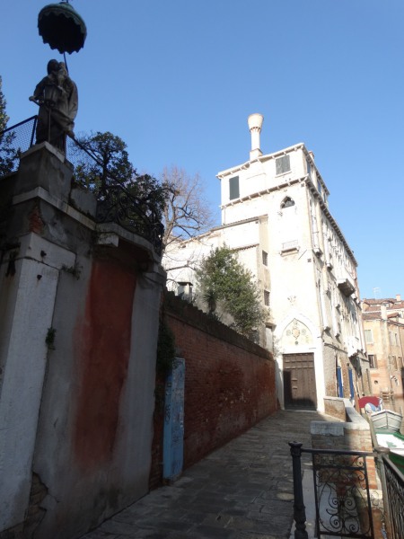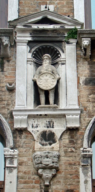 Au fond, au 5999, le palais Bembo-Boldu du XV ème/XVI ème siècle. Dans une niche un curieux personnage poilu et barbu tenant un disque solaire. C'est une représentation du mythique Homme des Bois "Homo Sylvanus“. Sous le disque une inscription difficilement visible.