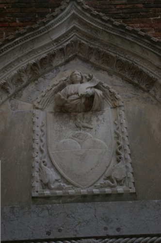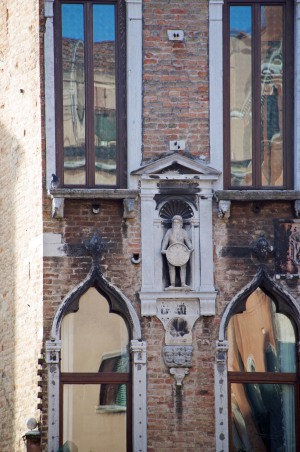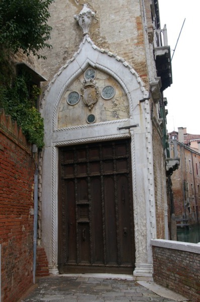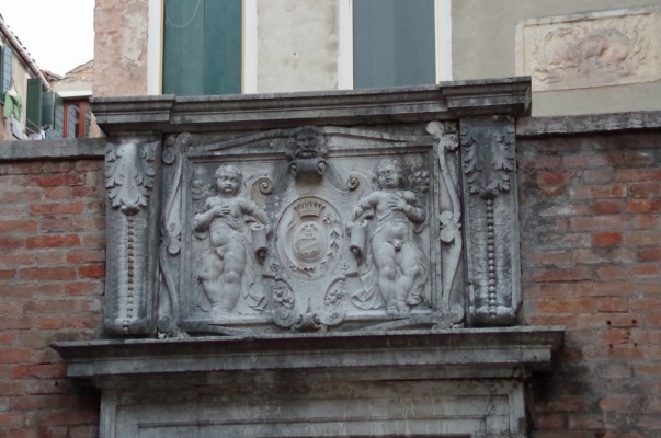 Au pied du Ponte del Pistor, vers le Campo San Lio, cette maison présente de nombreux éléments de décoration.