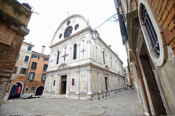Façade de Santa Maria dei Miracoli donnant sur le Campo dei Miracoli