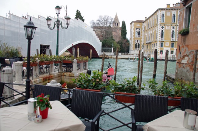 A gauche, le Ponte de l'Accademia en grand toilettage en décembre 2017