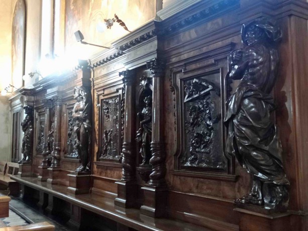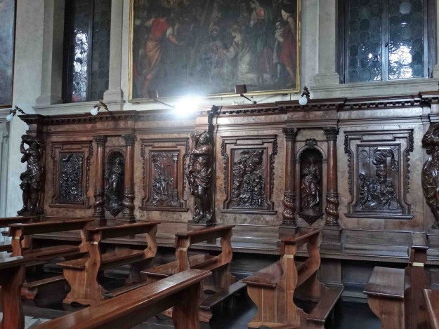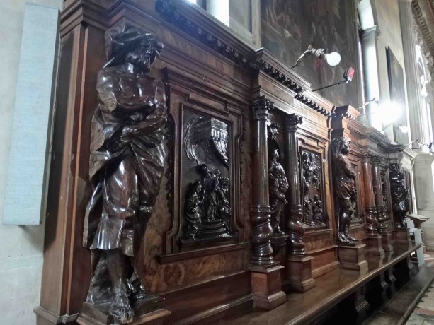 Ces boiseries, oeuvre de Giacomo Piazzetta (1640 - 1705) remplacent celles de Brustolon détruites dans l'incendie de la chapelle en 1867.