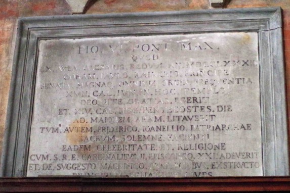 Plaque en l'honneur du Pape Pie VI qui rendit visite à Venise en 1782