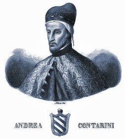 Andrea Contarini est le fils de Nicolò, il appartient à une riche famille qui petit à petit commence à dominer la vie publique vénitienne, objectif qui sera atteint au XVII ème siècle.