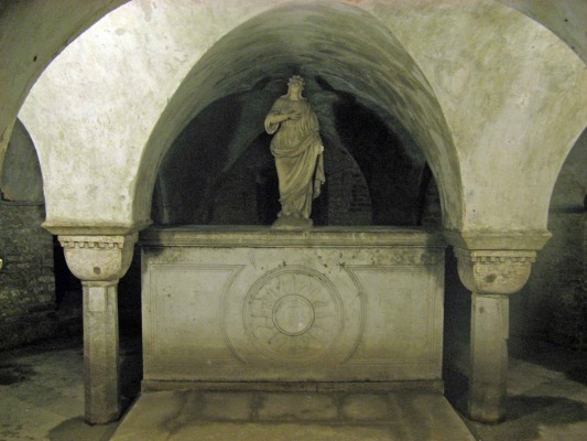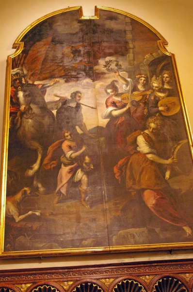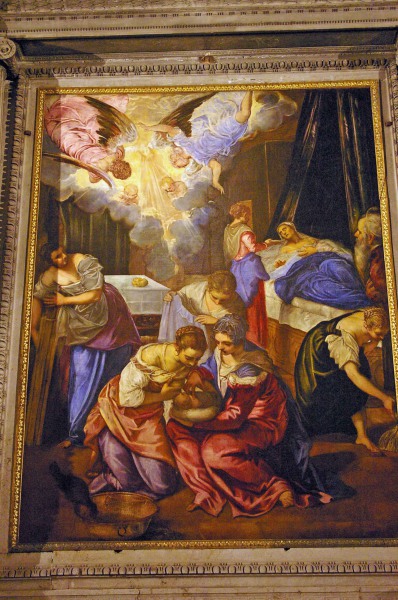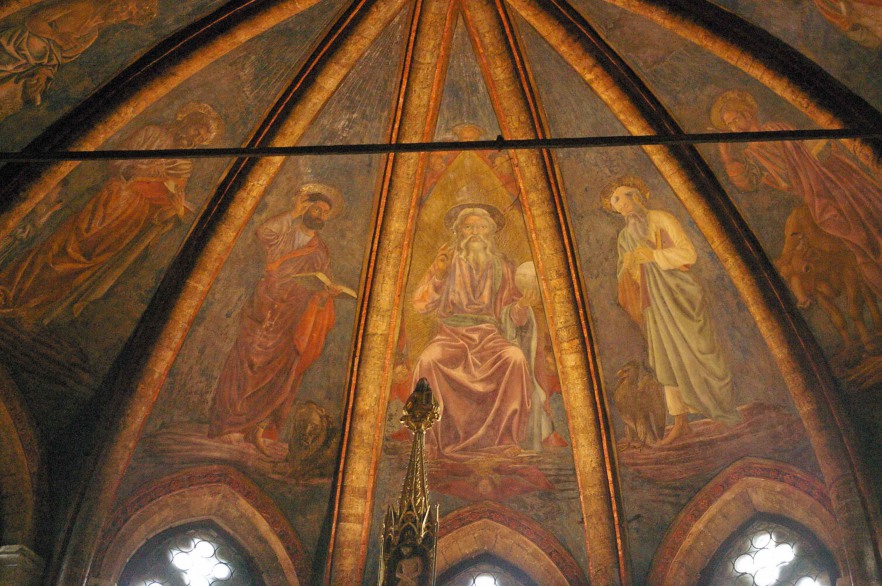 Le Père éternel au centre, à gauche Giovanni Battista, Matteo, Marco et à droite : Zaccaria, Luca, San Giovanni Evangelista