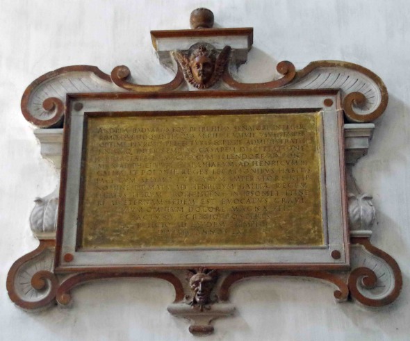 Mur de droite : Plaque commémorative d'Andréa Badoer (1515-1575)