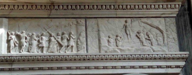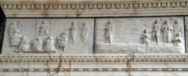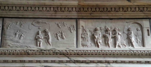 La lecture des panneaux se fait de l'entrée de la chapelle vers l'autel.
