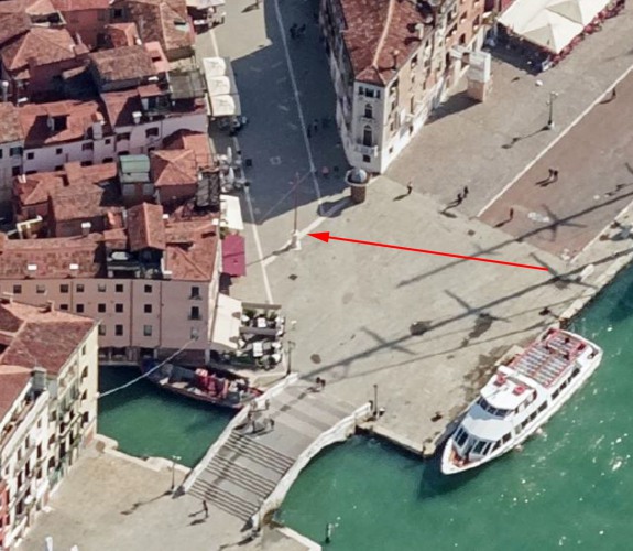 A chaque extrémité de la Via Garibaldi se trouve un cippo porta pennoni : un au pied du Ponte de la Cadena, l'autre à l'extrémité du Rio de Sant'Anna.