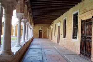 A gauche, vue sur le cloître "au puits,