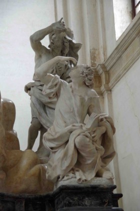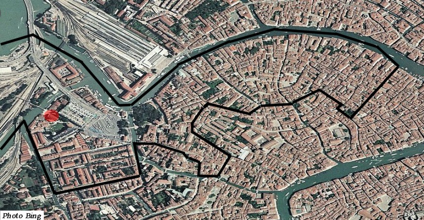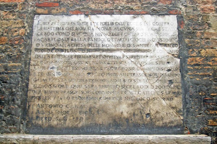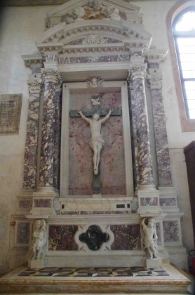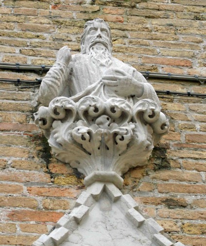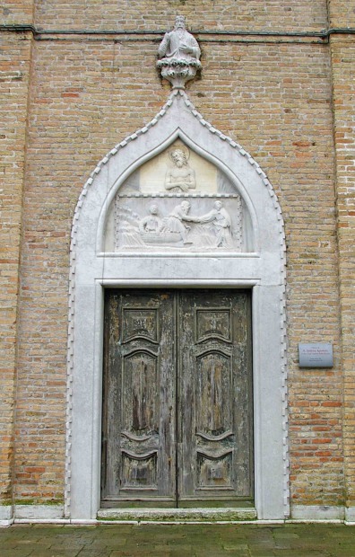 Voila ce qu'en dit John Ruskin dans "Les pierres de Venise" (1) : Digne d'être visitée pour l'effet particulièrement doux et mélancolique de son petit cimetière couvert d'herbes, ouvrant sur la lagune et les Alpes. La sculpture de la porte : La pêche miraculeuse, est un délicat morceau de la sculpture Renaissance. A noter les lointains rochers et l'aviron de la gondole actuelle, suivant le bateau de Saint-André. L'église gothique de la dernière période est très détruite, mais encore pittoresque ; les fenêtres à trèfles sont'bien traitées pour l'époque. Tout est ruiné et souillé par les fabriques et les ponts du chemin de fer. Un lieu de désolation !