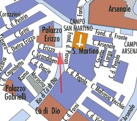 Sur le Rio de la Ca' di Dio, relie la Calle Ca' Erizzo à l'Ouest au Fondamenta dei Piovan o Erizzo à l'Est