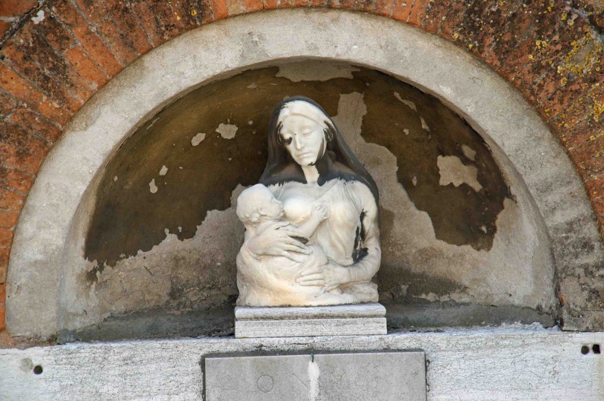 La traversée du Rio de Santa Anna sur le ponte San Gioachin nous a permis de voir une superbe vierge allaitant au 993. Nous tournons à gauche sur le Fondamenta, direction l'isola de San Pietro.