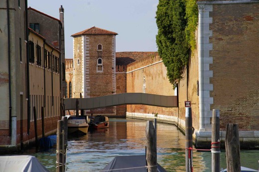 Ponte dei Pensieri permettant une sortie de l'Arsenal Sud affectée à la Biennale sans devoir revenir sus ses pas vers le Campo de la Tana C'est vrai qu'il penche...