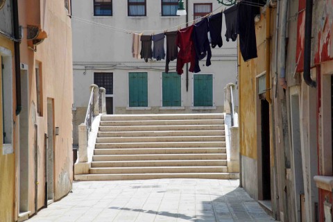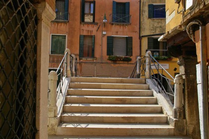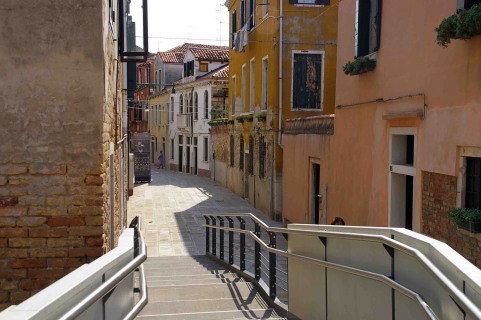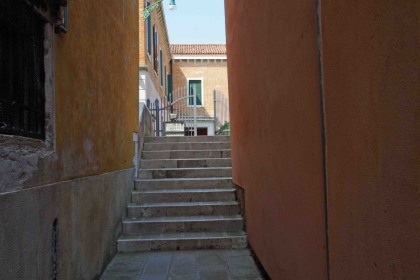 Au bout de la Calle un regard à droite dans la Salizada Streta, vers la direction supposée du Rio dela Vergini, nous fait apparaitre le Pont. Il s'agit du