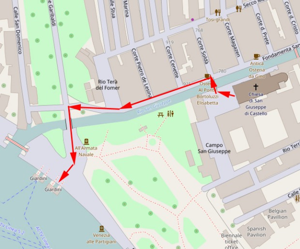 Si vous voulez revenir au centre de Venise par bateau voici l'itinéraire pour gagner le pontile "Actv - Giardini".