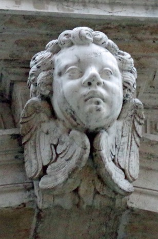 Un ange avec des rouleaux de parchemin et des putti qui portent