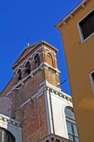Le campanile visible sur une peinture de Canaletto a été démoli en 1774. La reconstruction a commencé en 1805, mais le travail n'a jamais été terminé. Le petit bout construit est maintenant une boutique.