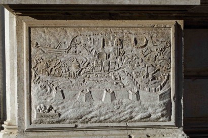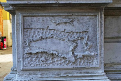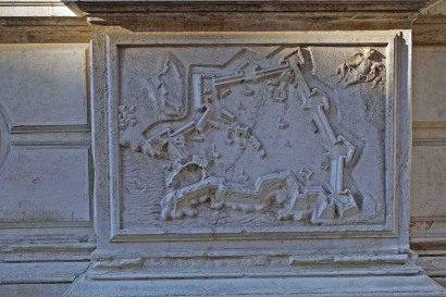 Sur le sous-bassement, figurent des villes où les membres de la famille Barbaro ont exercé des responsabilités.