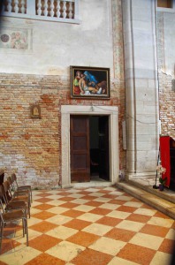 Sur l'entrée, monument à Vittore Cappello, général d'armée de Venise contre les turcs en 1462 et 1465 réalisé par Antonio Rizzi (~1430 - ~1499)