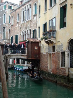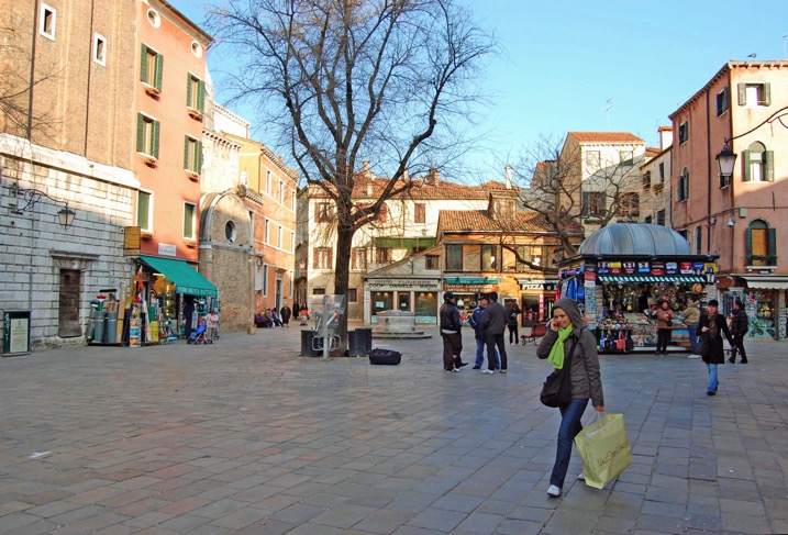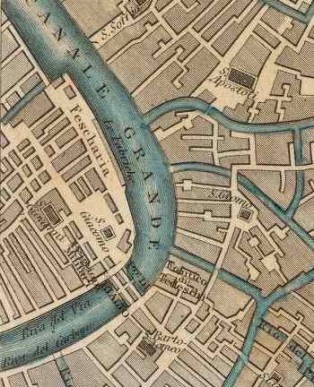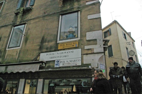 Avant d'atteindre le Campo San Bartolomeo ou en venitien San Bortolomio, il était encore possible d'acheter ses timbres à la Poste Centrale installée dans le Fontego dei Tedeschi. Celle ci se trouve maintenant dans le Palais Giustinian Faccanon, palais du XIV ème siècle - 5016 calle de le Acque.