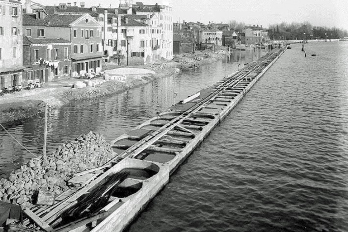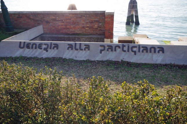 Cette statue remplace une précédente statue détruite dans la nuit du 27 au 28 juillet 1961 par une bombe fasciste. L'administration municipale de l'époque décida la réalisation d'une nouvelle statue. En 1969, Augusto Murer (1922-1985) remporta le concours en proposant un bronze représentant une femme morte, la partisane, les mains attachées devant la tête et dont le corps émerge de l'eau.