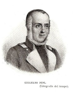 Guglielmo Pepe né en 1783 à Squillace est l'un des protagonistes des mouvements napolitains de 1821. Condamné à mort, il purge la peine en exil. De retour à Naples en 1848, il est nommé par le roi Ferdinand au rang de général. La même année, il assume le commandement du corps expéditionnaire napolitain qui participera à la première guerre d'indépendance. À Bologne, il reçut l'ordre du roi Ferdinand de se retirer du conflit. Pepe, désobéissant, se rendit avec deux mille hommes à Venise, où il fut nommé général en chef des troupes terrestres. Après la chute de la République, il vécut exilé en France puis à Turin où il mourut en 1855.