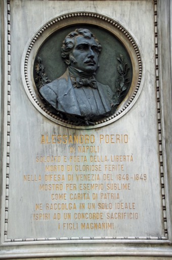 Allesandro Poerio est né en 1802 à Naples. Poète et patriote, il participa en 1821 avec son père Giuseppe et son frère Carlo aux mouvements insurrectionnels. Forcé à l'exil, il vécut entre l'Allemagne, la France et l'Angleterre, puis rentra en Italie en 1835. Son éducation littéraire fut fortement influencée par Leopardi et Tommaseo, ce dernier connu à Florence. Au début des soulèvements de 1948, il rejoint Manin pour la défense de Venise, subissant une très grave blessure lors de la défense de Forte Marghera. Il expira chez son ami Guglielmo Pepe au Procuratie Vecchie quelques jours plus tard, le 3 novembre 1848.