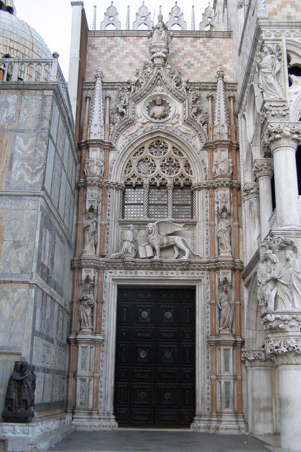 Nommée à l'origine Porte Dorée, la Porta della Carta était du temps de la Serenissime, l'entrée d'honneur du Palais. L'entrée des visiteurs se fit un temps par cette porte; Elle se fait maintenant par la Porte du Frumento au 2 sur le Molo San Marco face à San Giorgio.