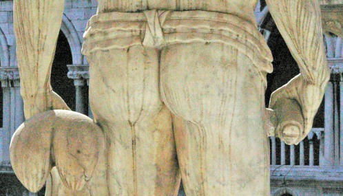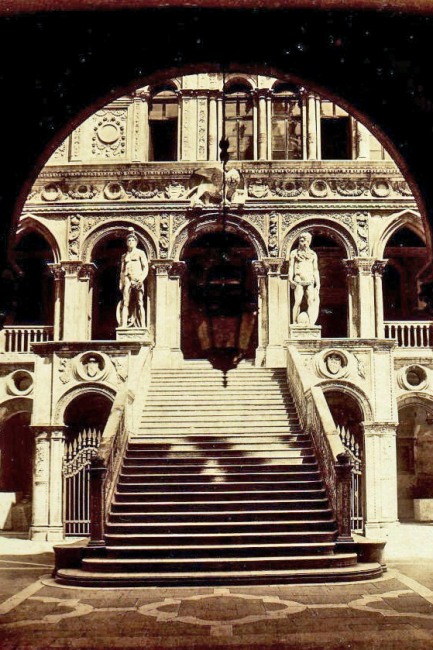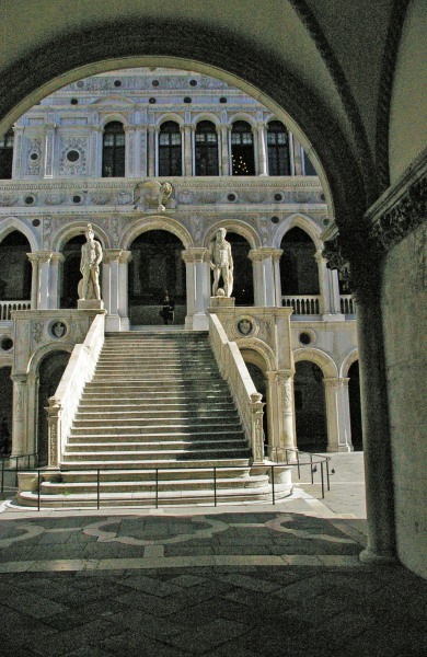 L'Escalier des Géants fut construit entre 1483 et 1485 sur un projet d'Antonio Rizzo (~ 1430 - ~ 1499). Deux statues dues à Jacopo Sansovino ( 1486-1570) figurant Mars et Neptune furent mises en place à cet endroit en 1567. Le grand escalier relie la cour à la loge intérieure du premier étage du palais et c'était l'endroit réservé à la cérémonie du couronnement ducal. Les deux statues colossales représentent la puissance et la domination de Venise sur la terre ferme et sur la mer.