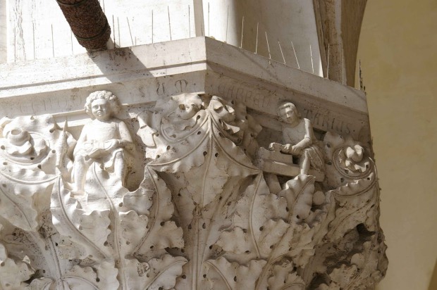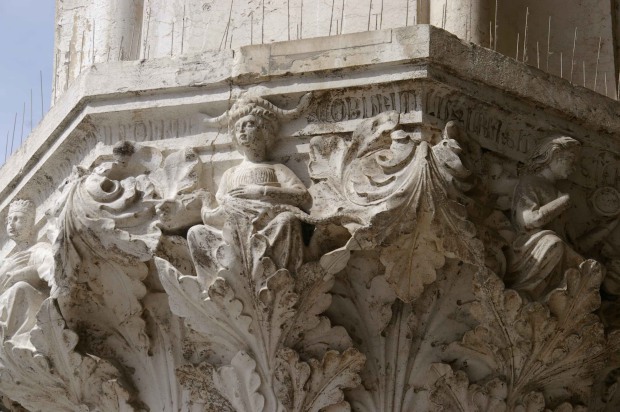 Chacune des 18 colonnes du rez-de-chaussée est surmontée d'un chapiteau octogonal. (soit 154 photos potentiels !!). En voici quelques unes.
