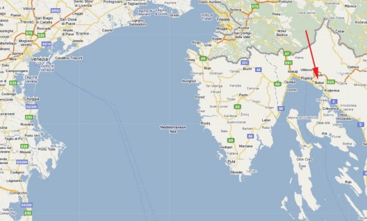 La face 1 est composée d'une carte des environs de Buccari et le texte suivant :