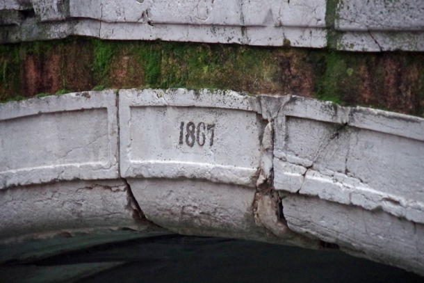 Pont en pierre, rambardes métalliques sur potelets de pierre