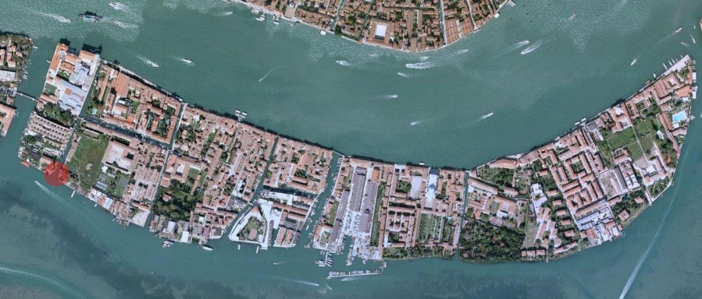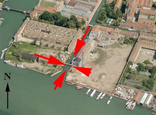 Cette passerelle, qui semble être provisoire, est utilisée par les chantiers de construction et de réhabilitation des rives du Rio de San Biagio.Elle a été découverte lors de notre promenade à la Giudecca le 30/12/2010 puis localisée ensuite sur Bing.