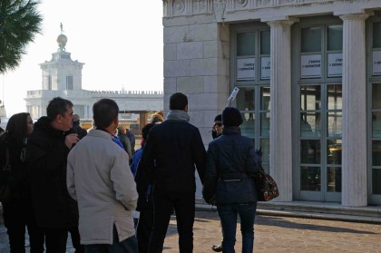 Ceux-ci ne regardent qu'une seule chose : le drapeau, le parapluie, la fleur, agité en l'air par leur guide. Comme hypnotisés par ce qui veut être un symbole d'autorité, ils délaissent tout ce qui peut être observé le long du parcours.