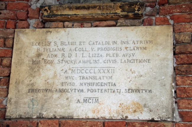 L'église recueillie en 1883 des éléments de l'église de San Biagio e Cataldo offerts par Giovanni Stucky. Ces éléments ont servi à ériger le portique qui donne sur le Fondamenta San't Eufemia. Dans une niche se trouve une statue de Saint Blaise, provenant elle aussi de l'église San Biagio.