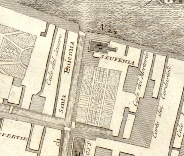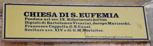 La première église aurait été construite vers 864 sous le règne du Doge Orso Partecipazio et fut placée sous le patronnage de 4 vierges et martyres : les saintes Euphemie, Dorothée, Thècle et Erasma.