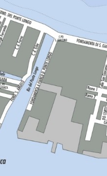 Il est traversé au Nord, en limite du Canal de la Giudecca par le Ponte Longo.