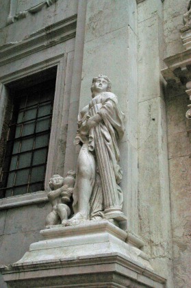 Détails des statues de la façade, oeuvres de Clémente Moli
