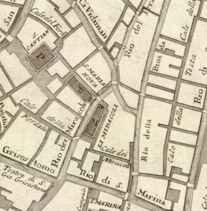 Cette toile conservé à Hanovre au Musée du Land de Basse-Saxe doit être considéré comme partiellement un "caprice". En effet le Rio dei Miracoli qui longe l'église Santa Maria dei Miracoli n'a pas cette largeur et ne débouche pas sur la lagune, comme tend à le faire croire l'arrière-plan.