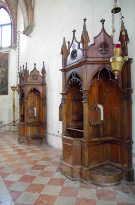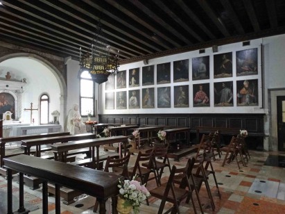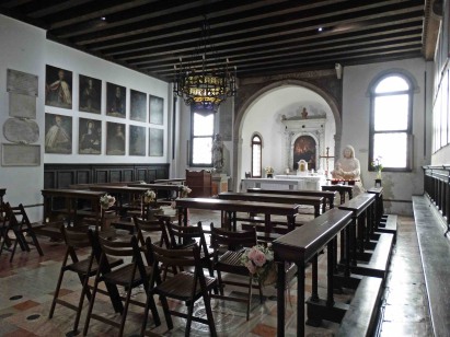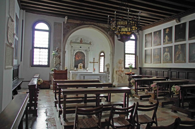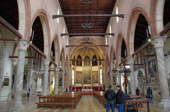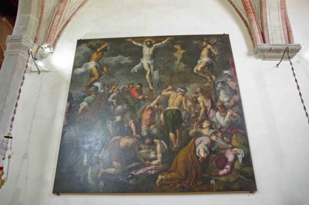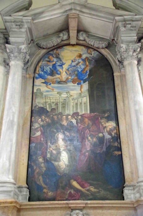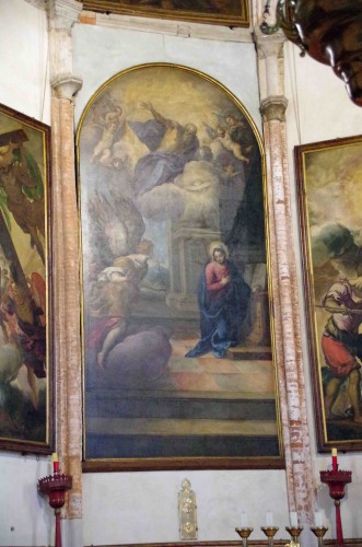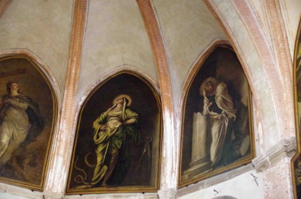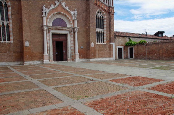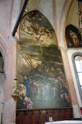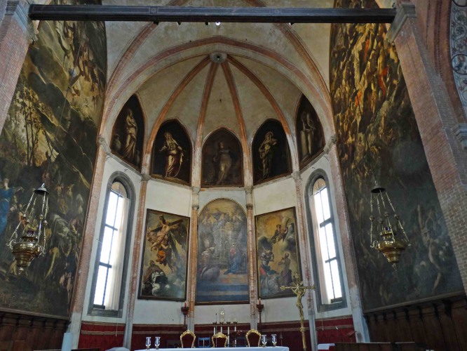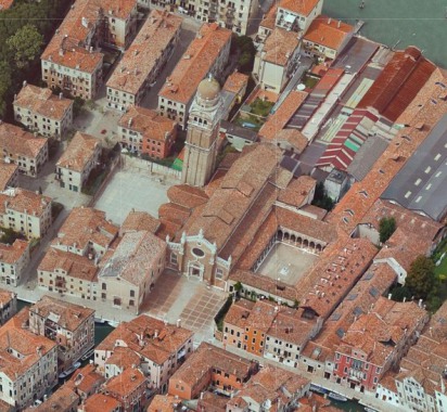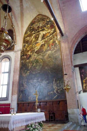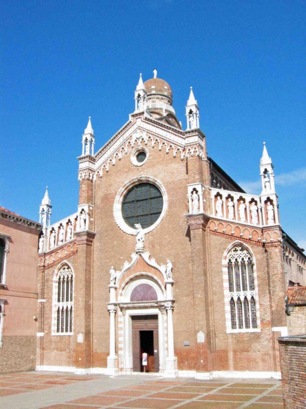 Intéressant modèle du Gothique renaissance; riches fenêtres découpées. Elle contient d'importants Tintoret...