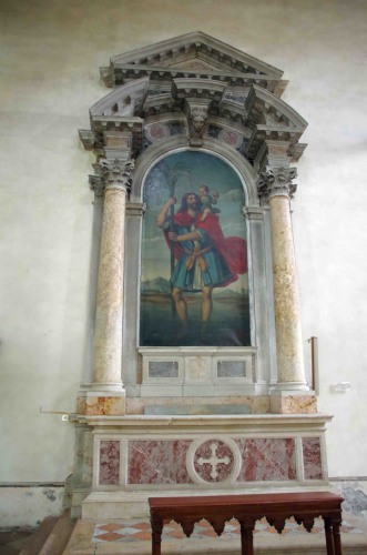 La première église fut construite vers 1365 et dédiée à Saint Christophe, le saint patron des voyageurs.