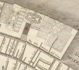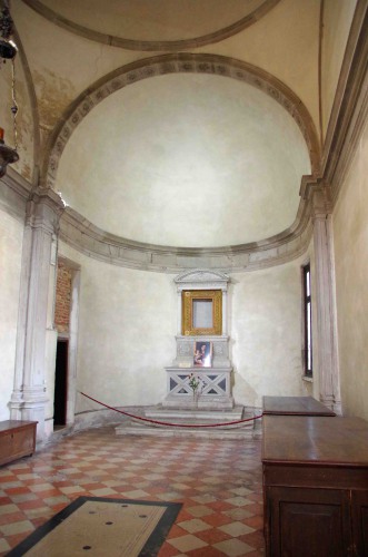 C'est au XVe siècle qu'elle fut consacrée à la Vierge quand, dans un verger voisin, on trouva une statue de la Madone présumée miraculeuse, d'où le nom de Madonna dell’Orto.