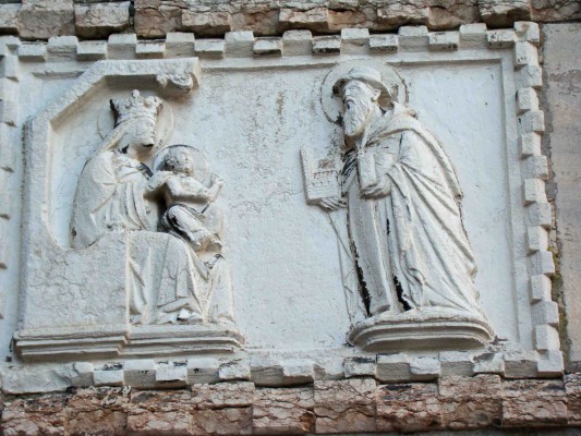 Au-dessus d'une des entrées, au 4905 - Campo dei Gesuiti - Madone avec San Magno.
