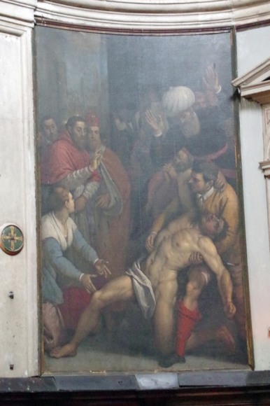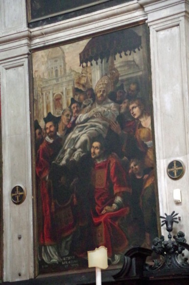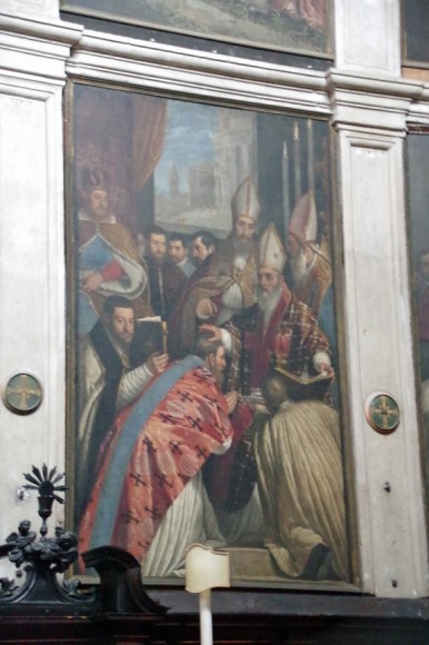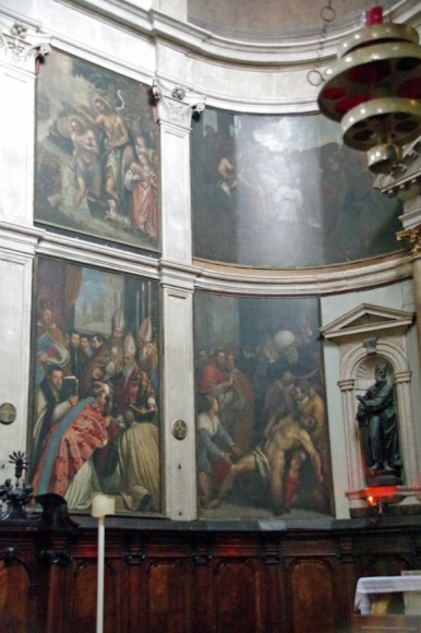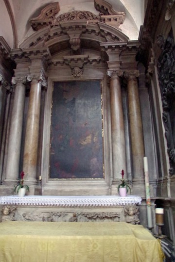 Dans sa lettre XVII, le Président de Brosses (1) donnait un inventaire des tableaux qu'il avait remarqués dans differentes églises; voila ce qu'il disait pour cette église :