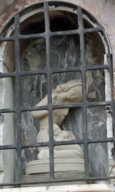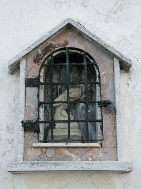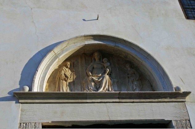 Sous la galerie latérale, la statue de San Biagio (Saint Blaise), provient de l'église San Biagio démoli en 1882.
