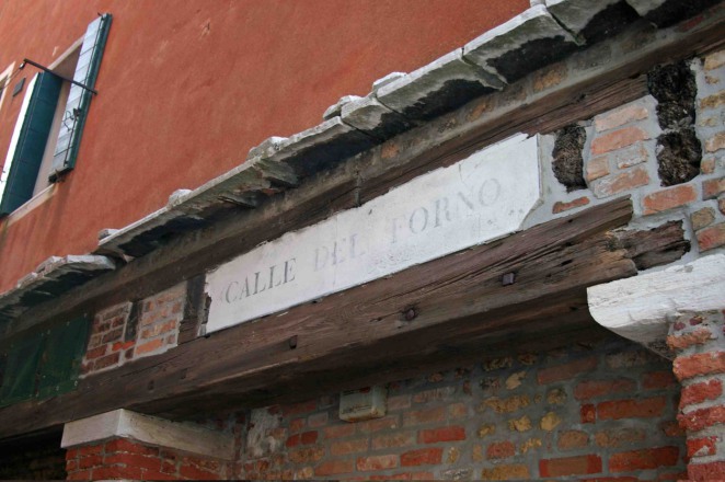 La Calle del Forno débouche sur le Corte dei Cordami ou vous pouvez voir un bel échantillonnage de cheminées.