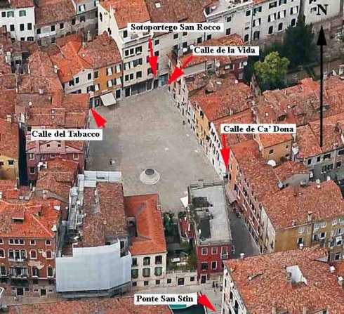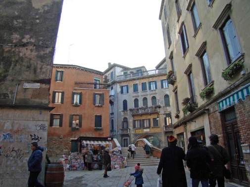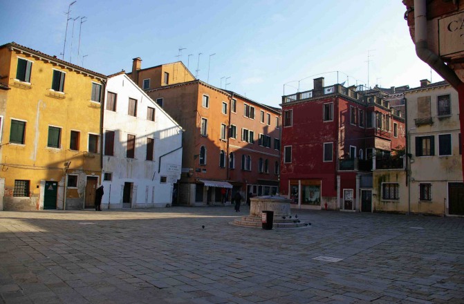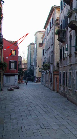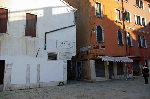 Nous sommes maintenant dans le Sestiere San Polo, ou nous découvrons, au 2465E nos premières patère du quartier et Calle del Campezzo un Vénitien bien dressé.