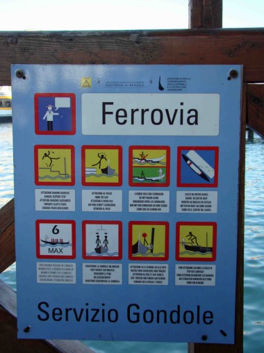 Un des points officiels de prise de gondole, avec une très belle pancarte donnant les consignes d'embarquement.